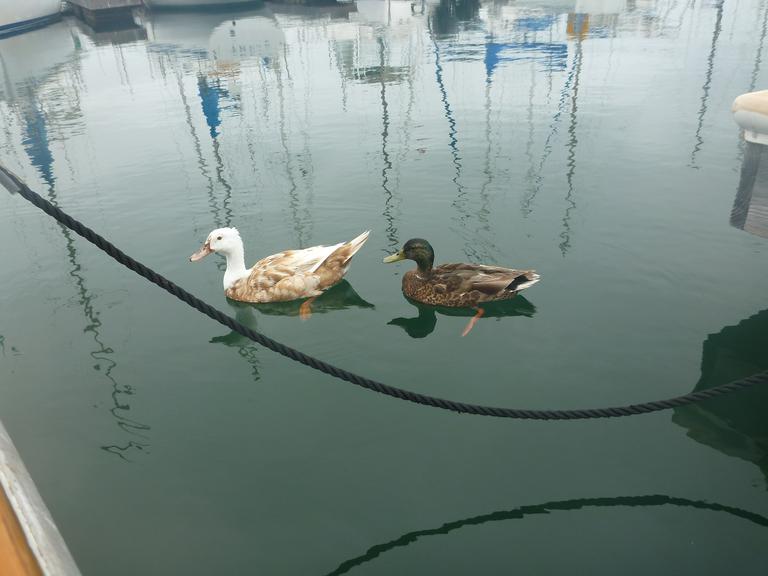 After laundry it was back to the boat to put away laundry and do some cleaning. While Carolyn was organizing some bags in the v-berth (the front of the interior of the boat) she accidentally pulled the "Pull to Inflate" tab on one of our life jackets. It was effective!