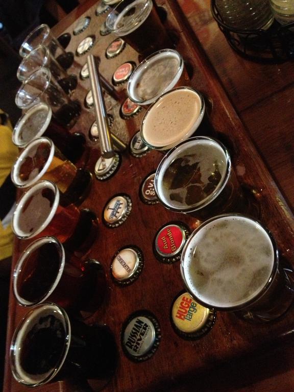We did a little cleaning on the boat in the morning and walked 2 miles into town at 11am to catch the Route 48 bus to Santa Rosa. Our destination in Santa Rosa? Russian River Brewing, of course. I am a big fan of sour beers and this place makes some excellent ones. We got the "taster set" of 14 beers, 7 of them sours for $15. A killer deal.