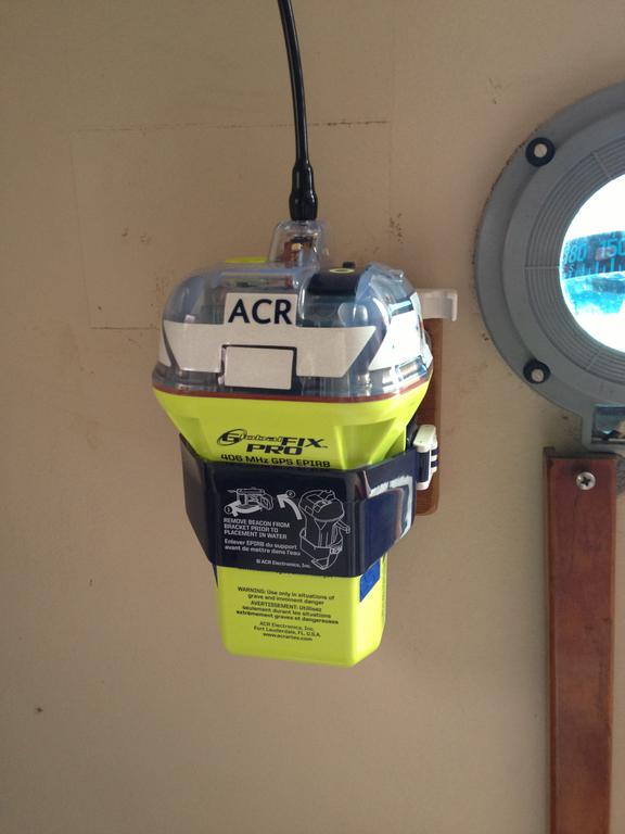 The EPIRB is a simple gadget in principle. Pull the lever on top and help is on its way. In practice, it is much more complicated. The unit has a built in GPS, so when we activate the unit in a life-threatening situation, it sends our location and a unique code to a sattelite that alerts someone who might be able to help us. In the U.S. that "someone" is the Coast Guard. I'm not sure who it is in other parts of the world.
