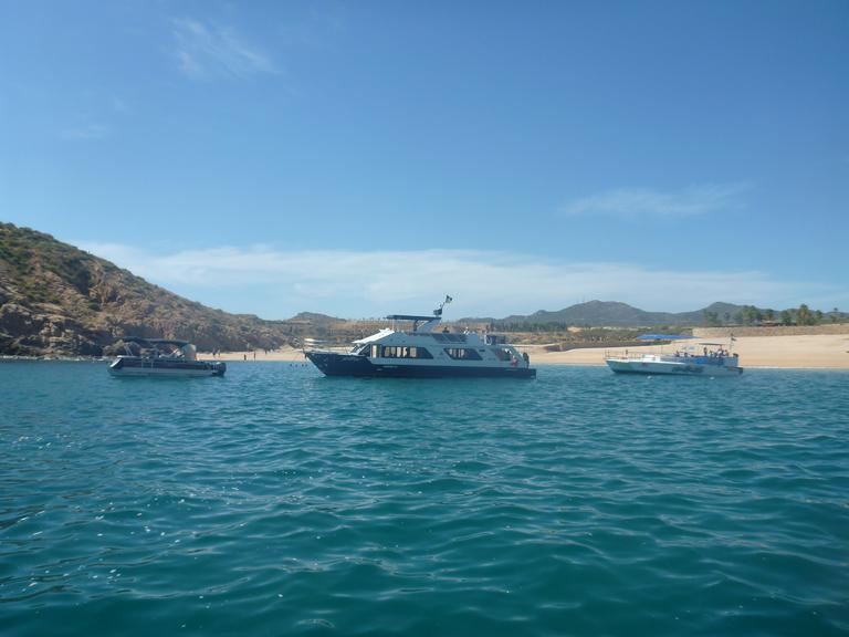 Every day of our stay in Santa Maria Cove has been paradise. The sun is warm, the water is warm, the beach is easy to get to, and we have plenty of people watching to keep us entertained. We snorkel and swim in the morning before the party boats come in. When the party boats start to come in at 11am we soak up the sun while we're watching the tourists learn to paddleboard and snorkel.