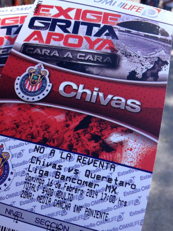 Chivas won 2-1 over Queretaro. Besides the fact that the game was soccer and the language spanish the experience was much like going to an American sporting event. A 24oz Tecate Light was 75 pesos and I didn't have to get out of my seat to get a refill. The stadium and the parking lot were cleaner than the few times I've been to Qualcomm Stadium. There were no flares at this game unlike the game we went to in Livorno a few years ago.