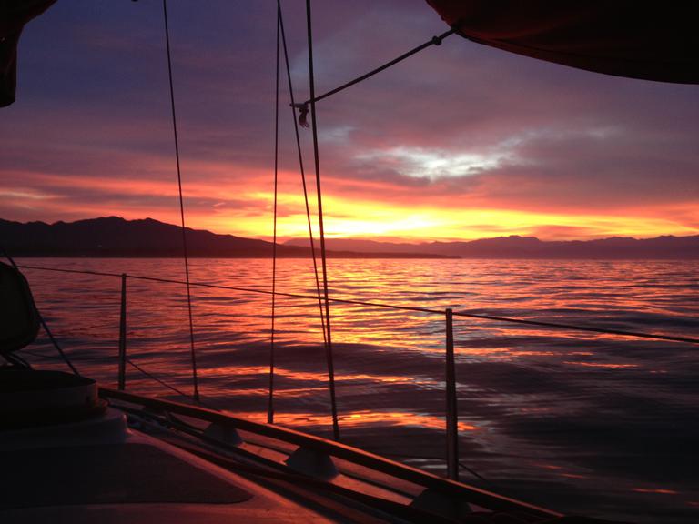 We pulled in on a Friday evening and grabbed one of the few bright orange mooring balls provided for boaters by the national park. It was a lovely sunset with a dinner from our favorite chicken spot in La Cruz, Tu Pollo. We awoke early, had a lovely breakfast of Dave's pancakes, saw the water was a bit choppy and cool yet for a snorkel and proceeded with a lazy morning. It seems this meant a post breakfast nap for me. I awoke to Dave having a very stern discussion with someone. I peeked my head out and the little bay was full of boats and people, snorkeling, paddle boarding, kayaking and generally having a good time. Apparently one of the tour boats was in need of the mooring ball and they were not taking no for an answer. Rather than share the mooring with a rather large boat we took off for anchorage across the way at Punt Mita where we spent the next couple nights very relaxed. We headed back to La Cruz and the arrival of our guests.