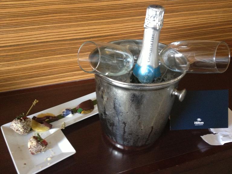 After so much excitement we rewarded ourselves with a beach day. Picnic lunch packed, white sand, warm clear blue water. It couldn't be more perfect, unless you had a nice air conditioned hotel room with running water and a real bed. So we did that too! Happy Anniversary to us. I used up the remainder of my hotel points and we spent a lovely two nights in the Hilton Waikiki. The friendly guy at the front desk even sent us up complimentary champagne. 6 years is just the beginning of this wild adventure I call marriage. We look forward to many more.