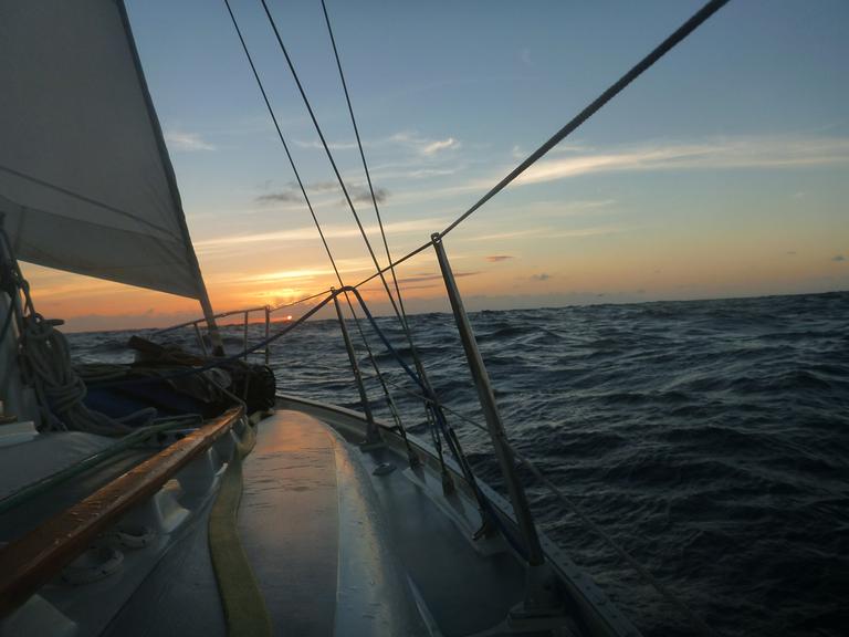 This is the sailing that's only supposed to happen in dreams. Perfect breeze, broad reaching at 6 knots, surfing down waves, and amazing stars - there's nothing more I can ask for.