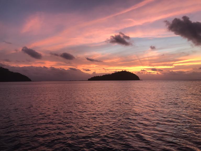 Yup, big winds and seas as expected. Did the 17nm in just a few hours - I hand steered the whole way. Surfing down waves at 7+ kts. Very wet, but no rain. Argued about whether we’d be able to get into anchorage and argued about other passages into reefs at Viti Levu. Arrived and anchored in Naigani at 11:30a.